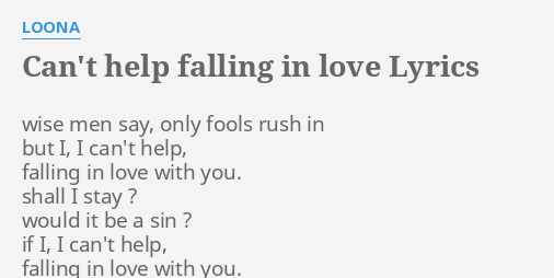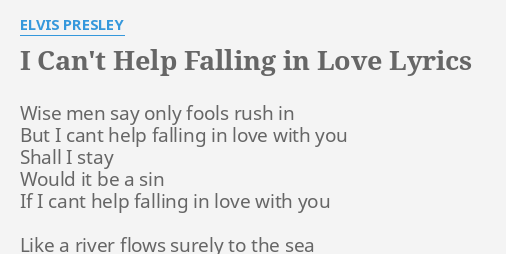 Would it be a sin If I cant help falling in love with you. Verse 1 Wise men say only fools rush in But I cant help falling in love with you Oh shall I stay. Wise men say only fools rush in But I cant help falling in love with you Wise men say only fools rush in But I cant help falling in love with you Shall I stay would it be a sin But I cant help falling.